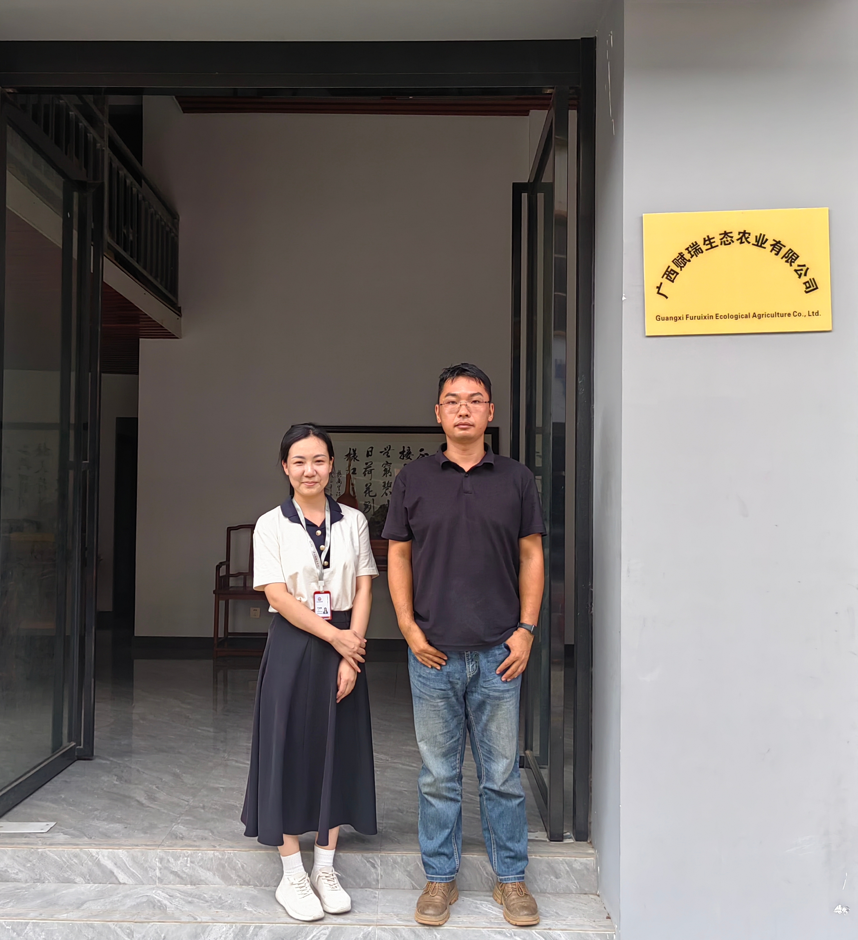 广西赋瑞生态农业有限公司是一家初创型农业企业,2023年成立以来积极探索“生态环保+农业+智慧化”现代生态模式,公司以八角、茶叶、山茶油等各类农副产品加工销售、乡村振兴项目合作及推广、家庭农庄规划设计与建设为主营业务。暑期伊始,牛亚鑫老师就进入了企业服务者的角色,她对三农工作具有深厚的兴趣,先后撰写《数字技术赋能乡村治理“五治融合”的现实困境与优化路径——基于广西壮族自治区贵港市Y村的经验考察》、《数字技术赋能乡村治理的路径研究——基于南宁市武鸣区M村的实证分析》等论文并在核心期刊发表。此次挂职工作中她扎根企业合作村庄,认真走访调研,从产业发展瓶颈到村民急难愁盼,逐一梳理、细致记录,以扎实的调研成果为打通村企合作“最后一公里”提供了有力支撑。