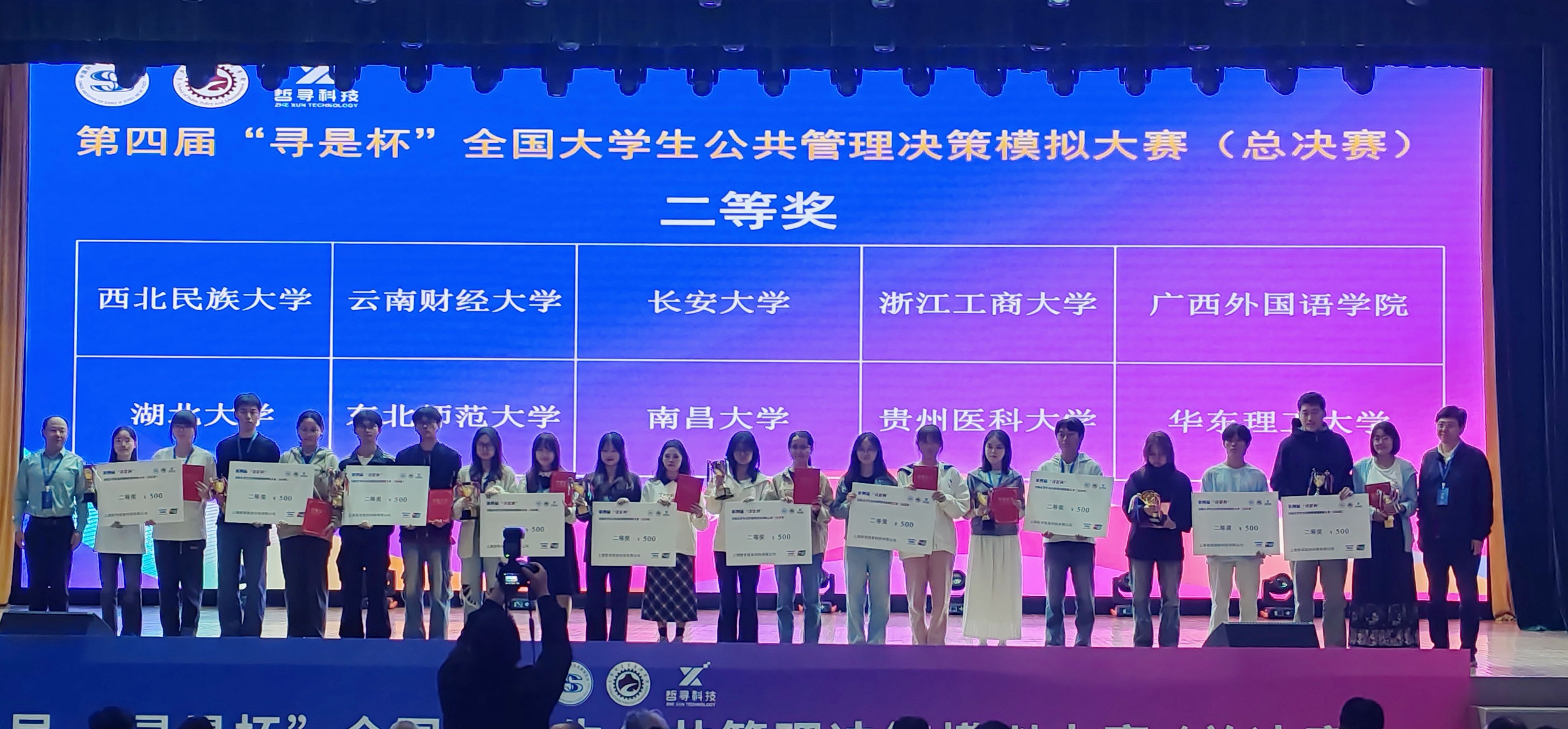 9月20日到21日,教育部高等学校公共管理类专业教学指导委员会指导,中国科学学与科技政策研究会主办的第四届“寻是杯”全国大学生公共管理决策模拟大赛(总决赛)在西安交通大学举行,来自全国100所入围决赛高校参加比赛。大健康学院代表我校出征比赛,由公共管理专业2023级吴若雪、陆丹丹、孙文杰三位同学组成的“智胜队”,在学院教师宁娇妹、牛亚鑫悉心指导下首次进入全国总决赛,经过两日激烈角逐喜获总决赛二等奖。宁娇妹、牛亚鑫荣获优秀指导教师奖。