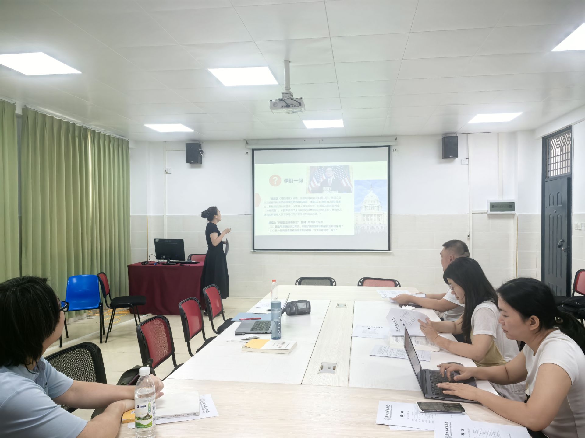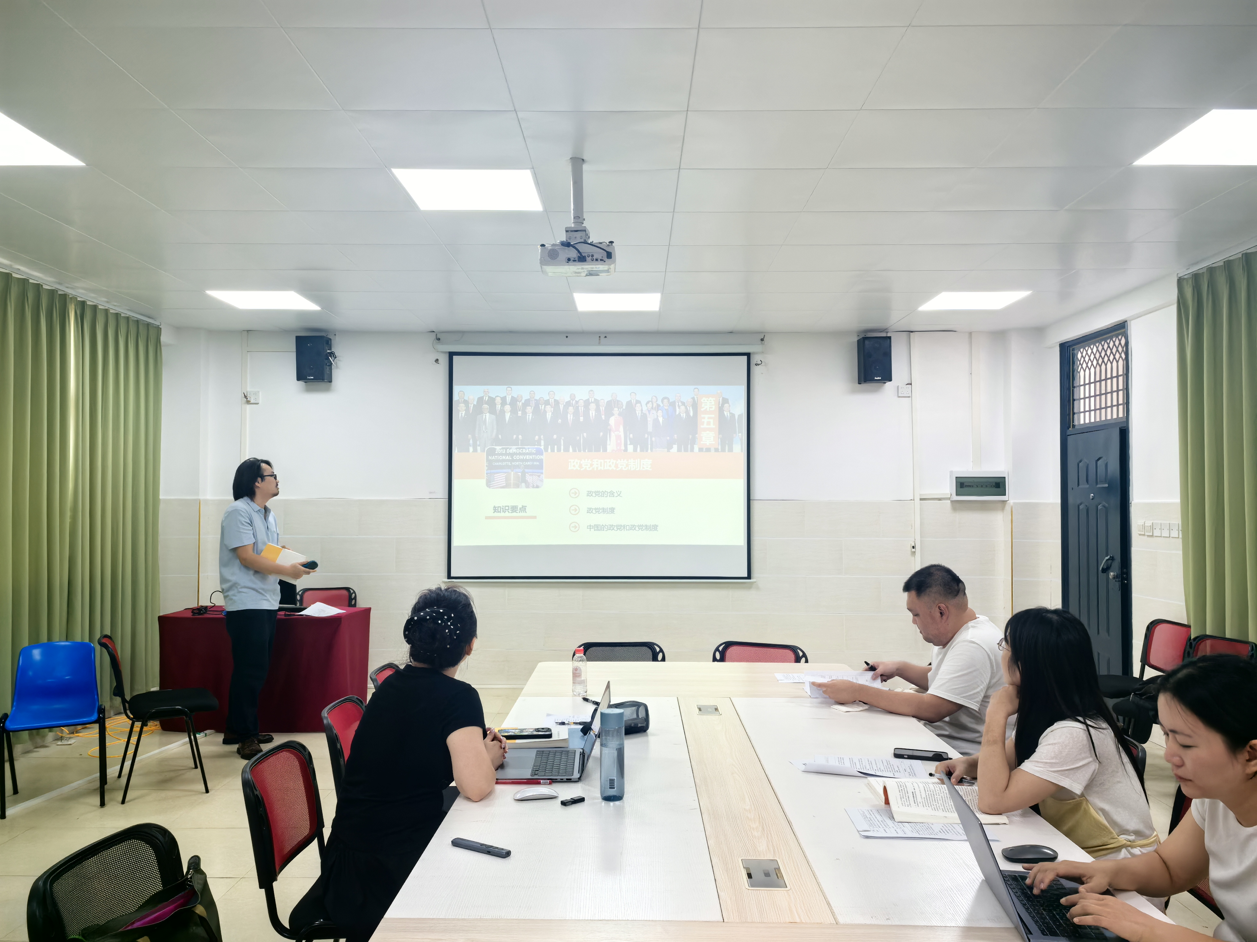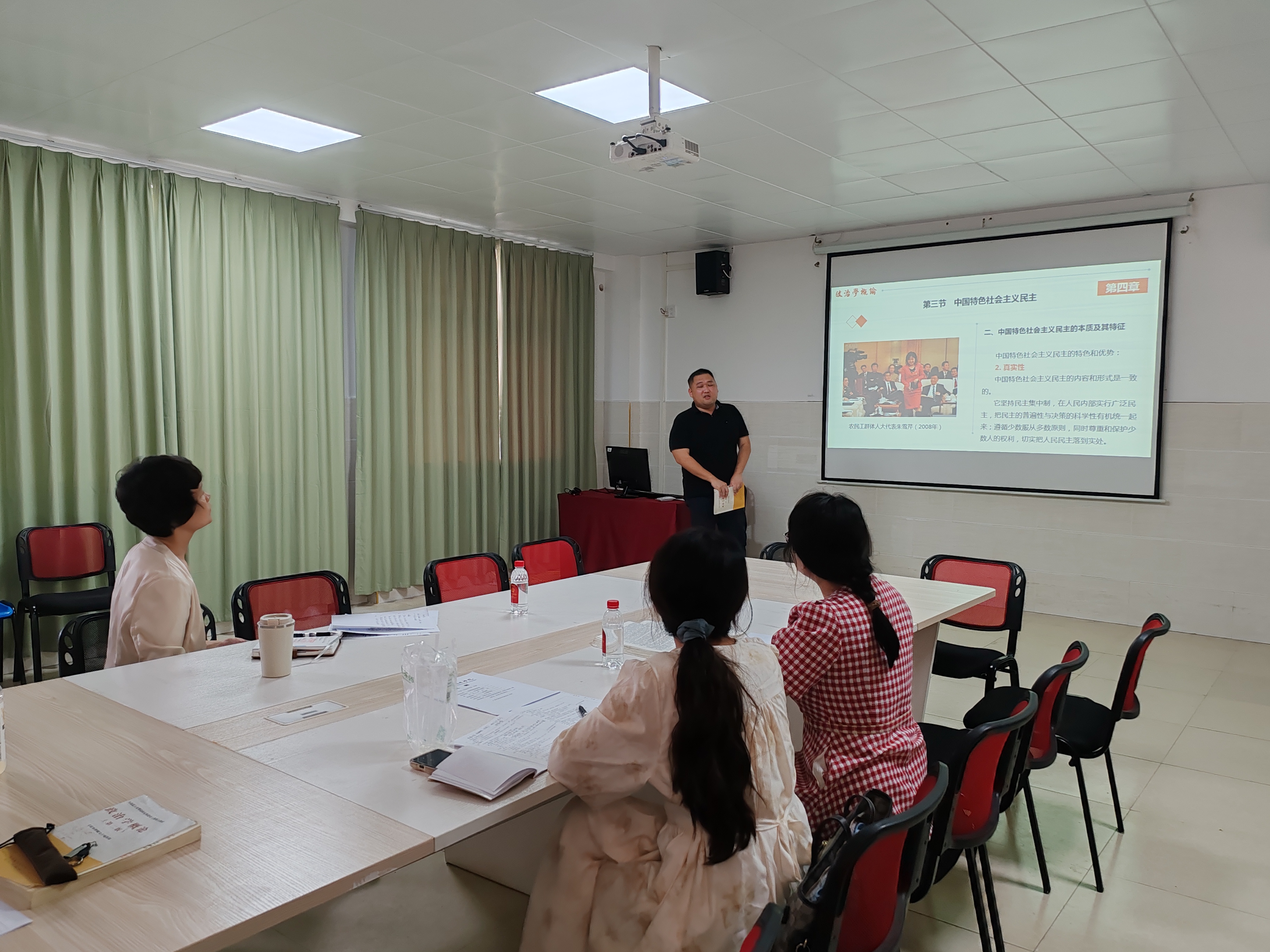 《政治学原理》课程组的阵容尤为强大,黄恒、谭知雨、伍弢和蒋业鑫四位老师齐聚一堂,共同梳理课程脉络,就如何讲清政治学基本概念、引导学生关注公共事务进行了多轮切磋与完善。