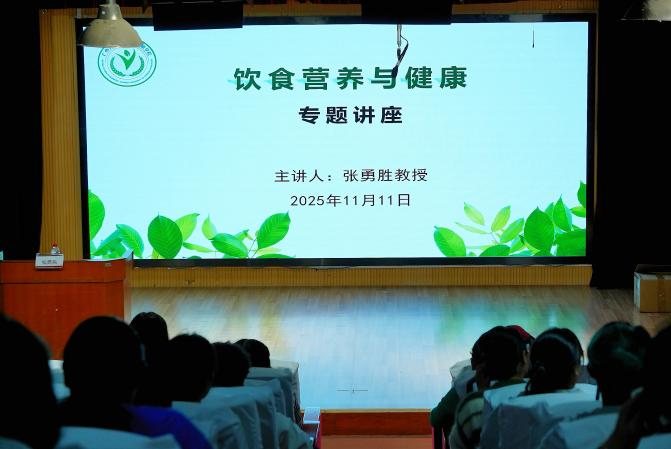 健康是青春的底色,饮食是健康的基石。为全面提升师生健康素养,纵深推进“健康校园”建设,进一步提升师生大健康意识,提倡健康生活方式,树立科学饮食理念,深入推进合理膳食行动,2025年11月11日,广西外国语学院大健康学院营养与健康协会特别邀请广西医科大学第一附属医院临床营养科主任张勇胜教授,开展了一场主题为“饮食营养与健康”的专业讲座。讲座吸引了学院师生代表共200余人到场聆听,现场学习氛围浓厚。