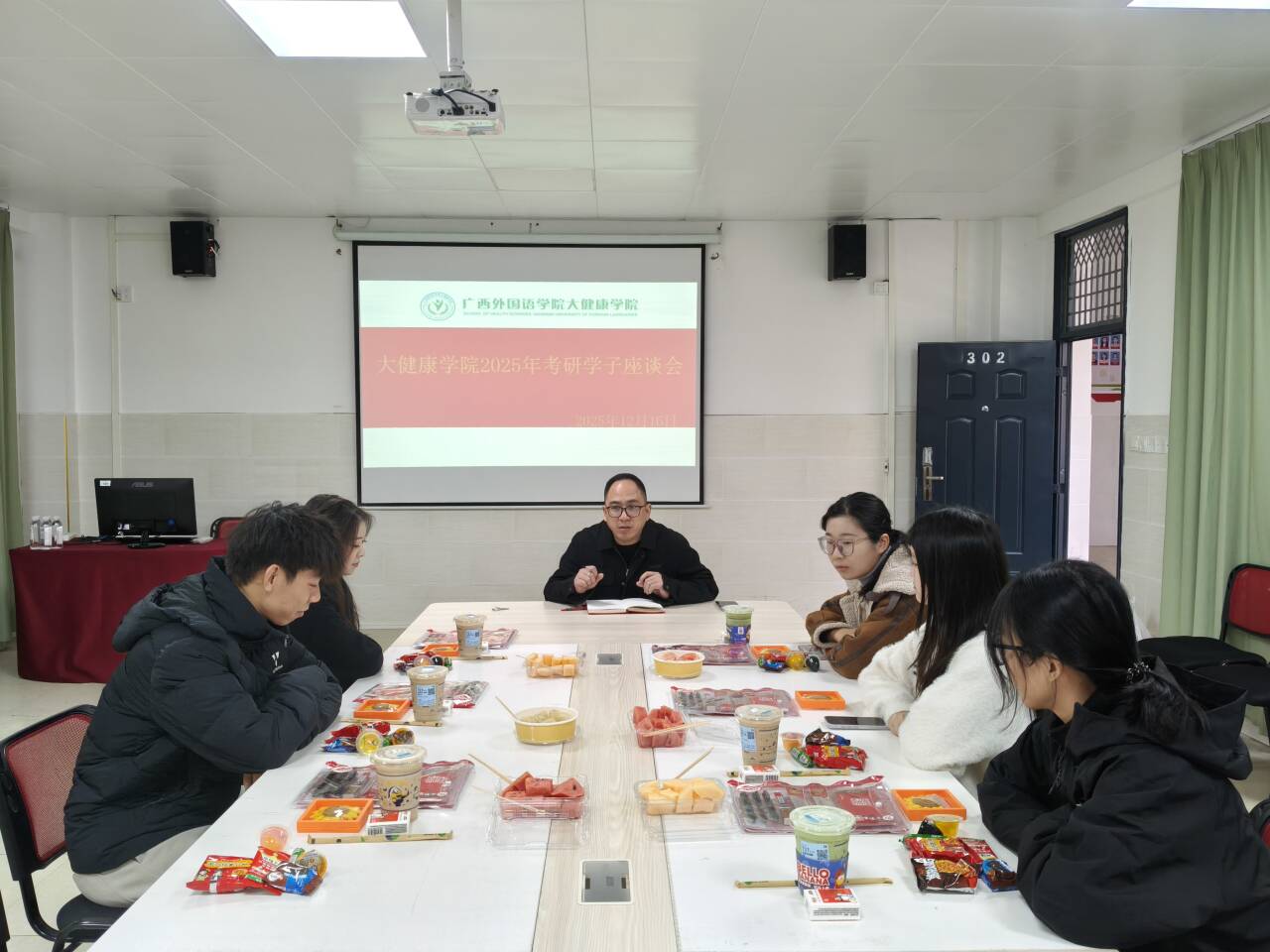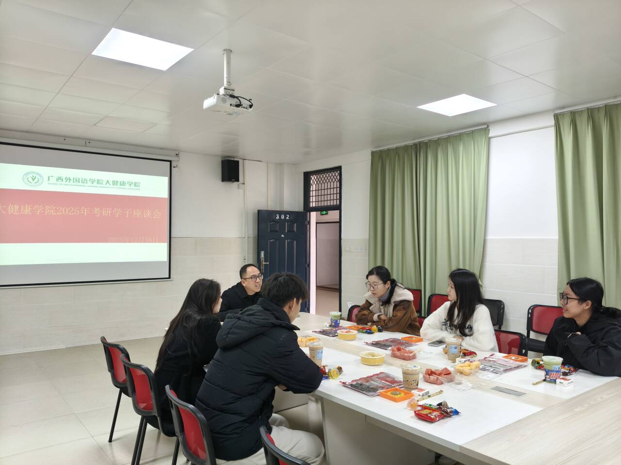 2025年12月16日,寒冬虽至,温暖不减。为帮助考研学子缓解备考压力、坚定冲刺信心,大健康学院在学院302会议室精心组织了一场以“研途同行,温暖相伴”为主题的考研学子座谈会。学院领导、教师代表与考研学子代表齐聚一堂,为学子送上备考关键期的关怀与力量。