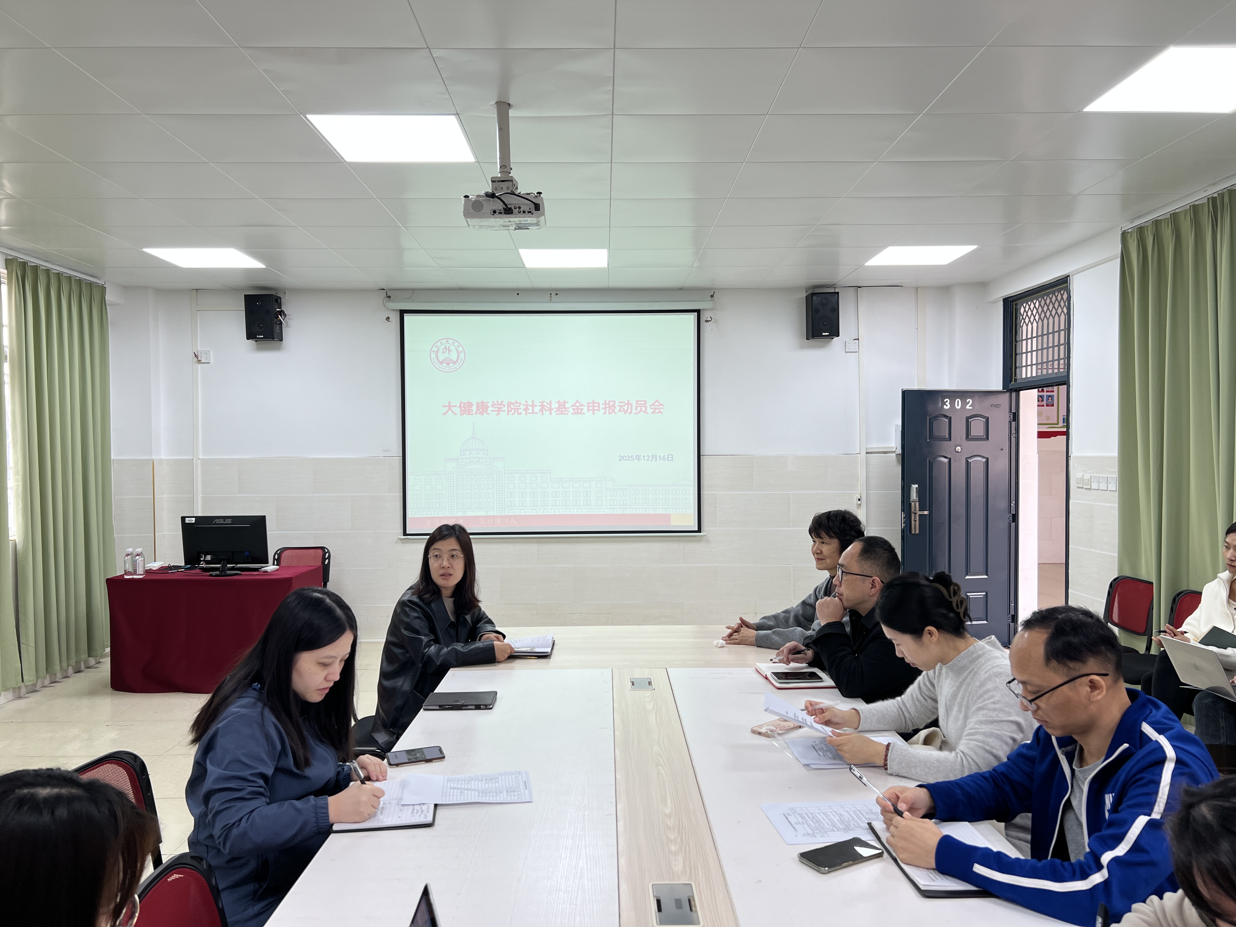 2025年12月16日,大健康学院召开社科基金申报动员会。学院副院长谷苗苗主持会议并作动员讲话,鼓励全院教师积极参与科研项目申报,提升学院整体科研水平与学术影响力。