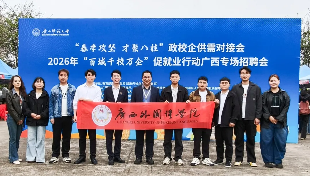 3月28日,“春季攻坚 才聚八桂”政校企供需对接会暨2026年“百城千校万企”促就业行动广西专场招聘会在广西师范大学雁山校区举办,学校党委副书记、副校长周振飞和学校就业工作办公室领导带队,组织10名就业指导教师及百余名应届毕业生赴现场参会,以校地联动之力拓展岗位,用全程暖心服务护航学子求职。我院积极组织20余名2026届毕业生参会并为同学们提供就业咨询指导服务。