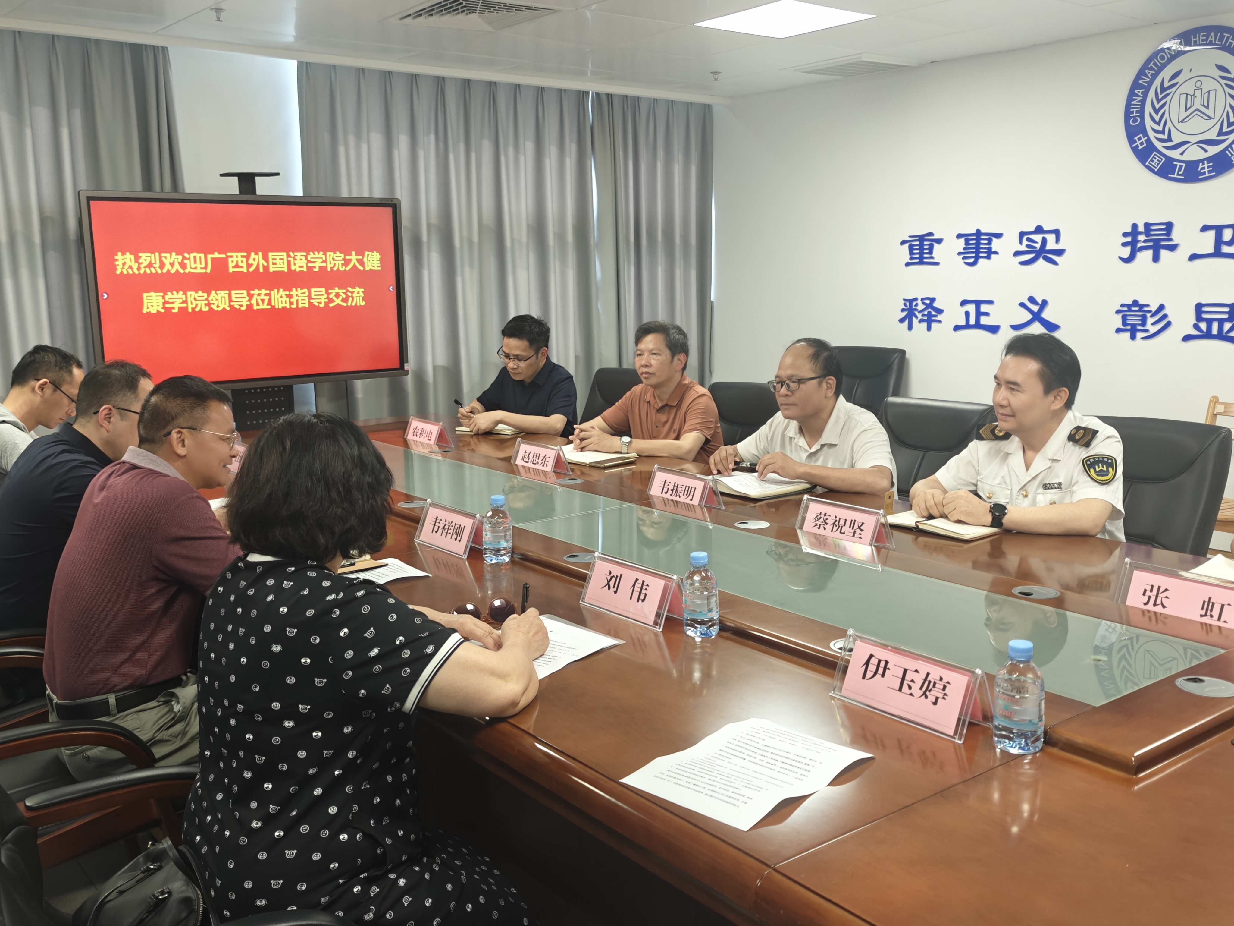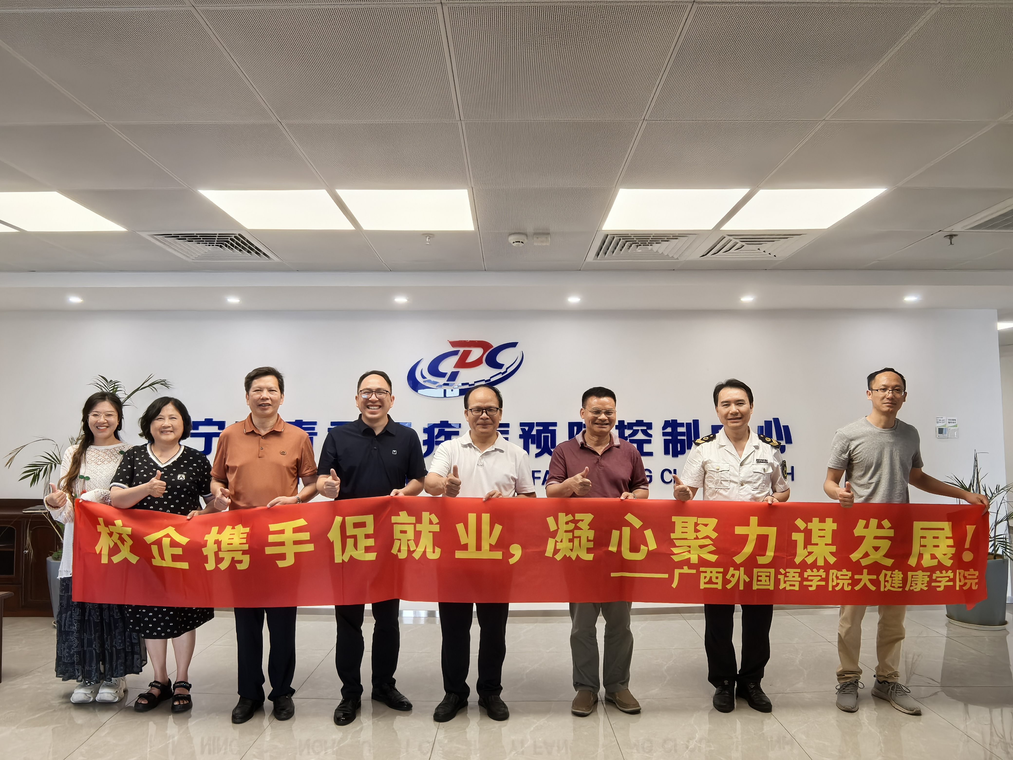 为深入贯彻落实高校毕业生就业工作部署,扎实推进“访企拓岗促就业”专项行动,深化校地合作、拓宽毕业生就业渠道,近日,广西外国语学院外事顾问韦祥刚教授率大健康学院相关负责人及教师代表,赴南宁市青秀区疾病预防控制中心开展走访交流活动,受到青秀区疾控中心韦振明主任及领导班子的热情接待。