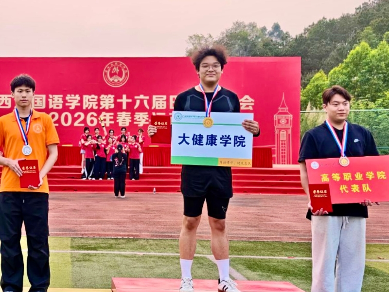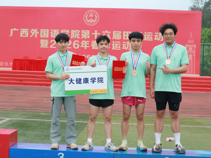 春风沐赛场,奋进正当时。2026年3月27日至28日,广西外国语学院第十六届田径运动会暨2026年春季运动会在五合校区圆满落幕。大健康学院学子携凌云之志、聚协作之力,驰骋五合校区赛场,于田径赛道上突破自我、竞逐荣光,在板鞋竞速、背篓绣球等民族特色体育项目中凝心聚力、共展风采,一路摘金夺银、捷报频传,以汗水诠释体育精神,以拼搏彰显“健康向上、奋勇争先”的学院底色,为这场体育盛会绘就了属于大健康人的璀璨篇章。
