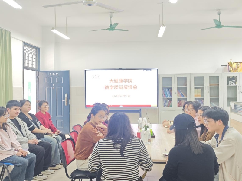 2026年3月17日下午16时,大健康学院系宁娇妹、何依依、农蕾嫘三位老师在笃行楼302会议室组织学院各班学习委员,开展2025-2026学年第二学期教学质量反馈座谈会,搭建师生沟通桥梁,精准收集教学意见,助力教学质量提升。