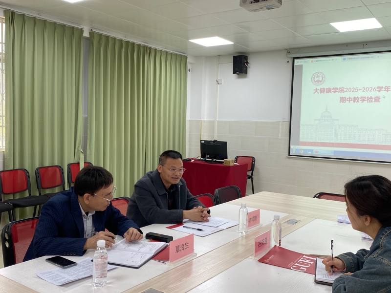 为全面了解教学运行状况,保障教学秩序,提升人才培养质量,2025年11月19日,学校顾问韦祥刚教授与数字科技学院院长覃海生教授一行莅临大健康学院,开展期中教学检查工作。大健康学院副院长谷苗苗及系部主任、副主任接待并参加了检查汇报会。